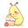 Instantly download and print this funny digital art of a blushing pear character sneaking cake. Perfect for adding a quick splash of dessert humor.